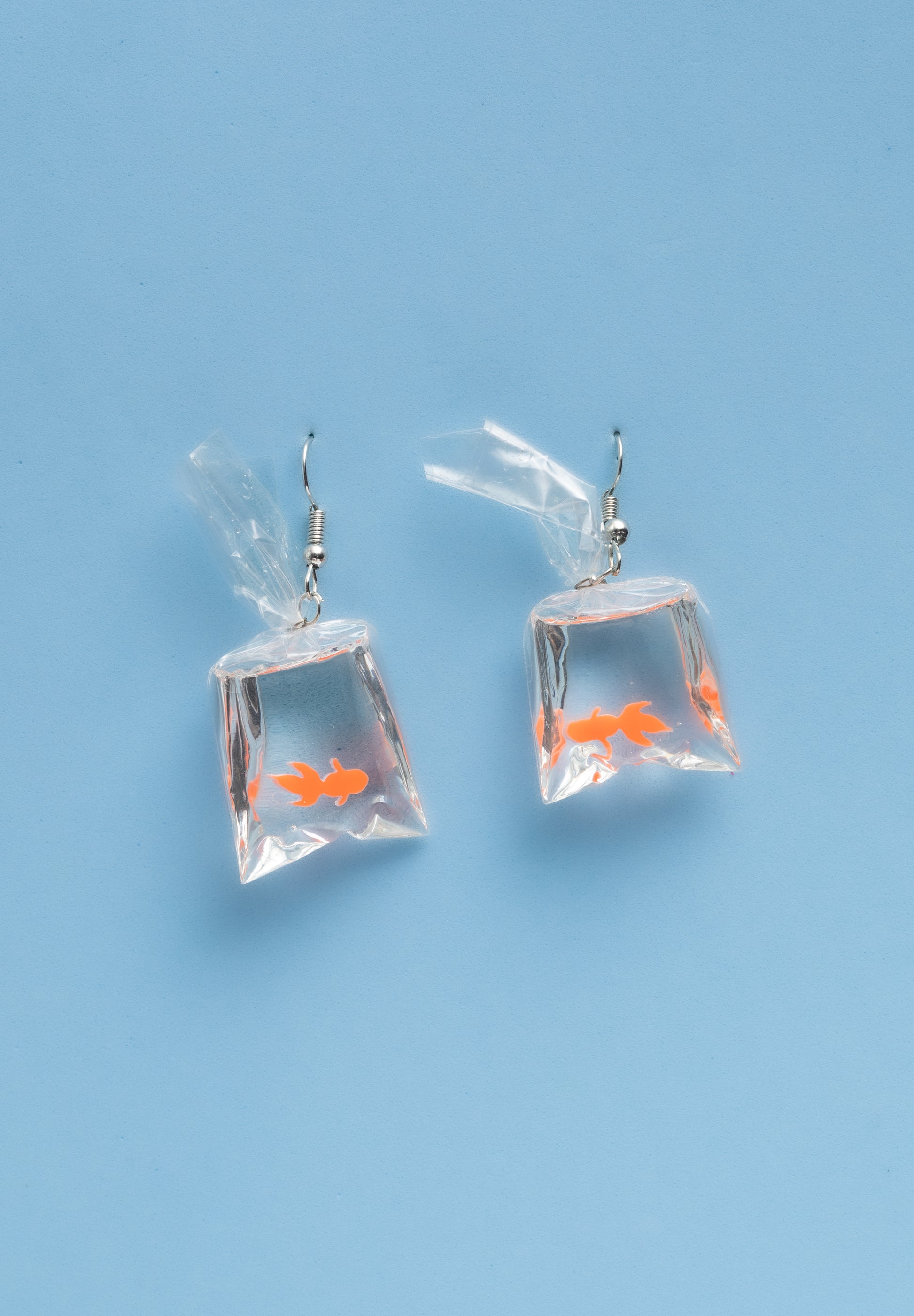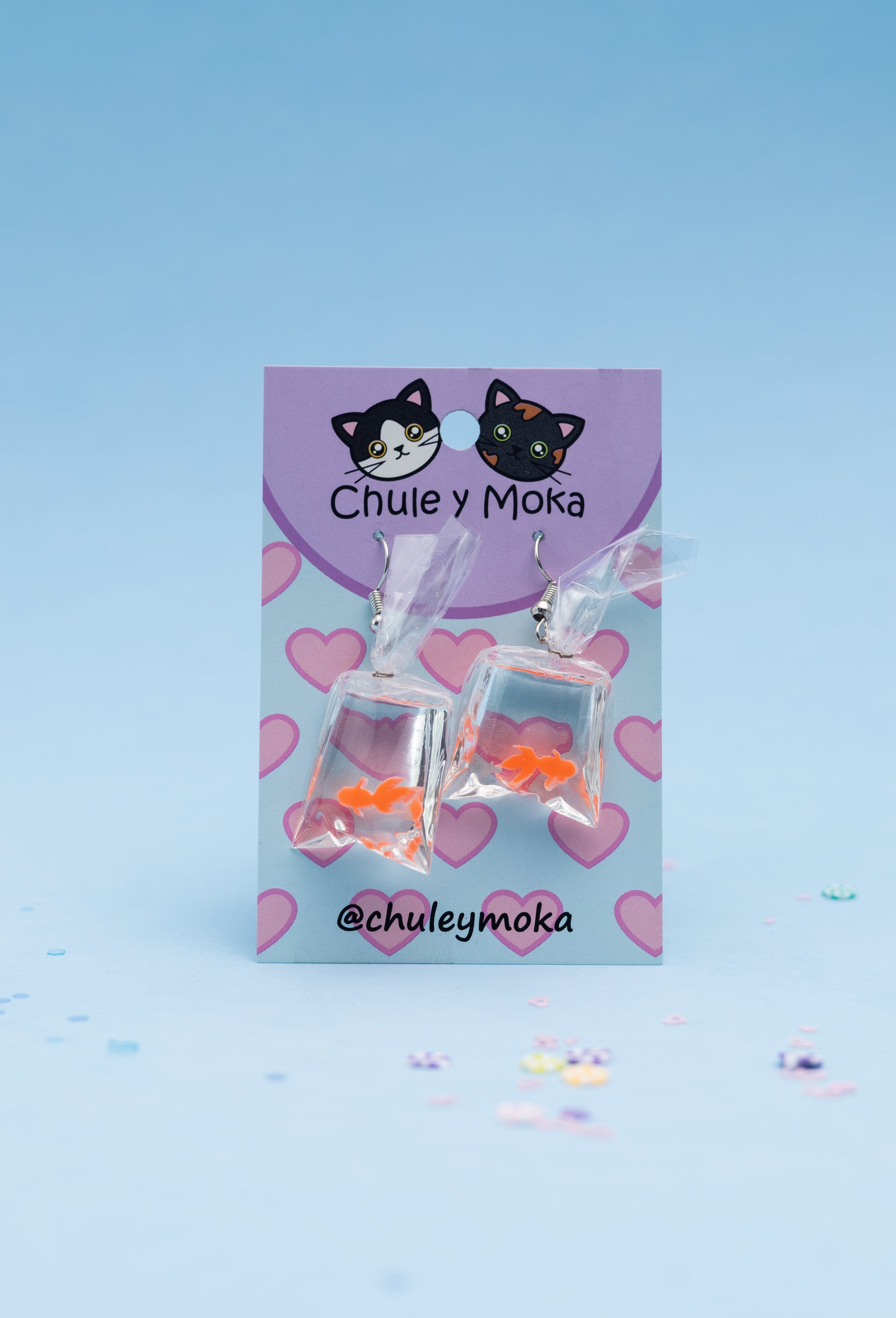Hermosos aretitos de bolsita con pez naranja.