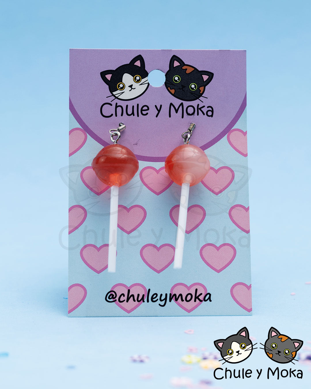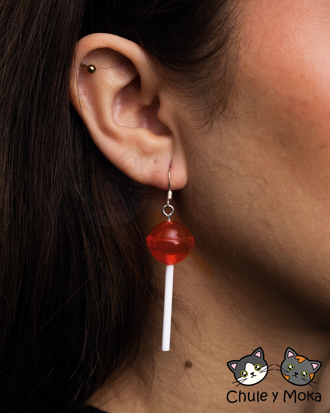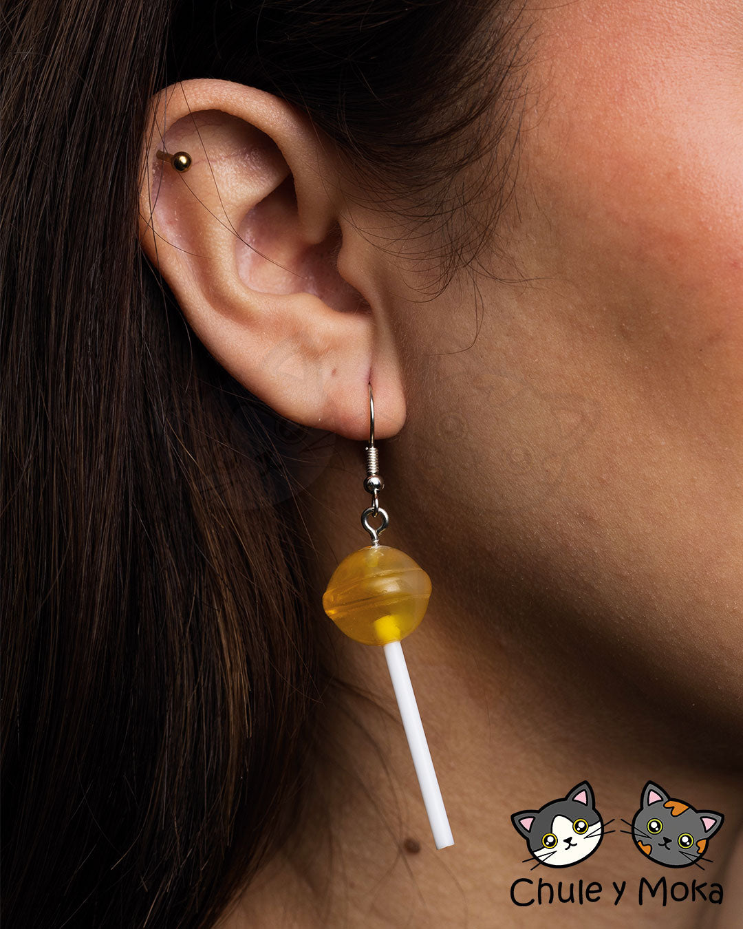 Lindos aretes de paletita de bolita de varios colores, hechos con resina, para sacar tu lado más dulce.